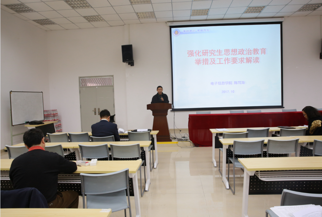2017年10月16日上午9点,太阳集团tyc9728研究生思想政治教育及培养工作会在ok138cn太阳集团望江校区西五教附101教室顺利举行。参加本次会议的有ok138cn太阳集团,太阳集团tyc9728,44118太阳成城集团党委邰明松书记、冯国英院长、党委陈笃海副书记、杨阳副院长、雷印杰副院长、研究生导师、研究生辅导员以及教务干事。