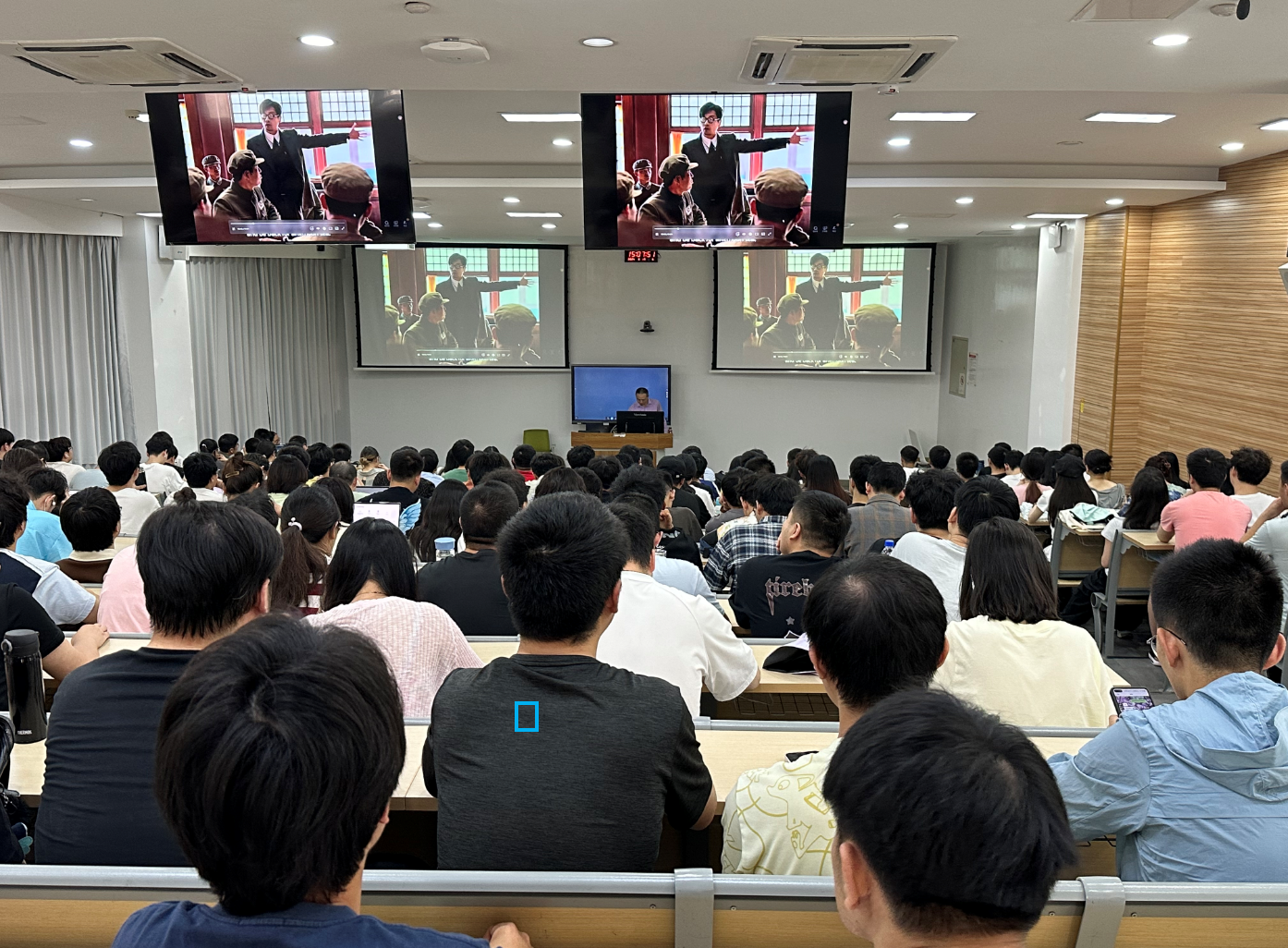 在谢老师热情的主持下,课程于14:55正式开始。谢老师首先以抗美援朝影片片段进行了引导,使同学们领会强国必须强军,国家的强大对实现中华民族伟大复兴的重要作用。