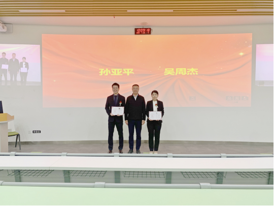 本次聘任仪式由彭舰书记主持。彭书记首先发表了热情洋溢的致辞,向晋升副高职称教师表示热烈的祝贺,并宣读学校聘任决定。随后,杨阳院长为新晋副高级专业技术职务的教师吴周杰、孙亚平颁发任职资格证书。