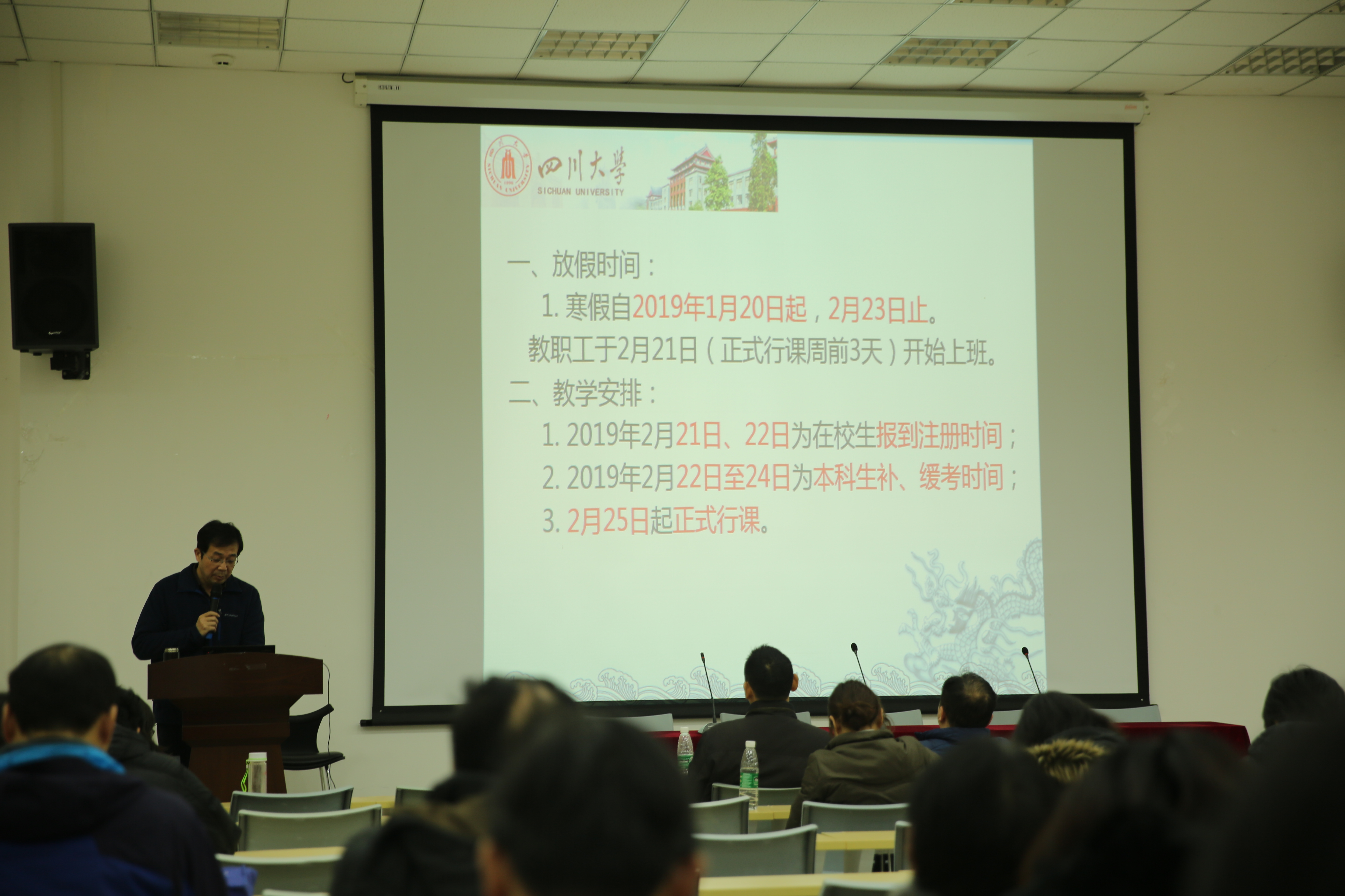2019年1月22日上午,在望江校区西五教附101室,太阳集团tyc9728召开了学院期末总结大会,学院全体教职工参加了本次会议,会议由学院党委邰明松书记主持。