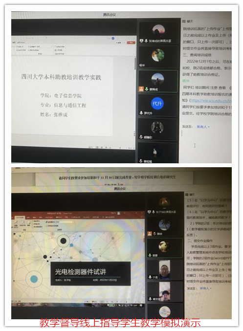 早上8:20雷印杰副院长在线开始了教学方法与技能的培训环节。雷印杰副院长结合学院专业课程教学要求,对助教承担教学辅助工作的具体要求如随堂听课、收集作业、辅导答疑、组织课堂讨论、协助教师批阅作业等工作及学生对助教评教进行了讲解,并就助教提升思维模式、增强知识能力、主动加强和任课老师、学生沟通、高效负责完成教辅工作等教学方法运用能力进行了培训。