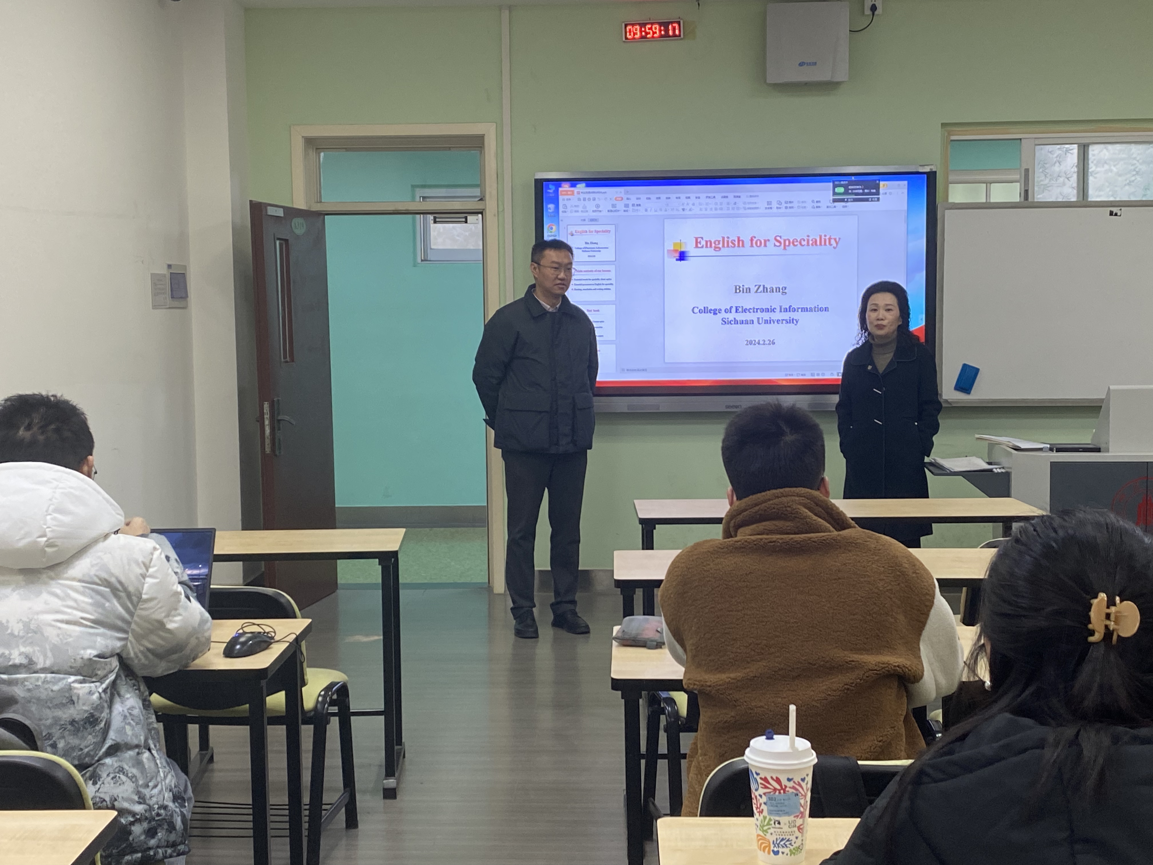 当天杨阳院长在望江基教A座进课堂检查了张益老师的《专业英语(电子信息)》、张彬老师的《专业英语(电子信息)》、王策老师的《天线与电波传播》授课,并在课间和张彬老师交流,了解教材选用、学生到课率情况等。