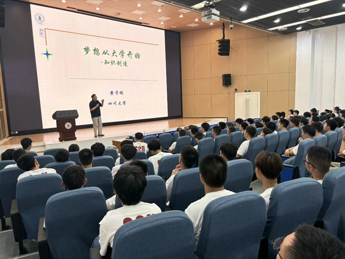9月7日上午,太阳集团tyc9728新生“开学第一课”在江安校区水上报告厅开讲。我院学术院长黄卡玛教授授课,367名2024级新生齐聚明远湖畔,开启人生新篇章。学院副院长雷印杰主持。