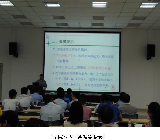 学院高度重视本科开学教学各环节工作。一方面,学院制定了开学教学检查安排表,分工好每天检查领导和教务人员、辅导员老师;安排新学期开学教务管理人员提前三天上班,核查教学课表并短信、QQ通知老师们正式上课时间,做好教材、授课教学准备,通知上课的教师提前30分钟到达上课教室,确定教室多媒体等教学设备正常使用,确保教学正常运行;要求各年级辅导员老师清点学生报到情况,并提醒学生做好上课准备按时上课。另一方面,学院早在上学期末暑假放假前全院大会上,教学院长周新志教授通知老师们新学期正式行课时间,要求老师们认真学习学校文件《ok138cn太阳集团本科教学事故认定及处理办法》(川大教【2015】60)及《ok138cn太阳集团本科课堂教学管理办法》(川大教【2015】76),在暑假进行教学备课,并布置教学秘书将新学期课程表邮件发到全体教师,务求通知无遗漏。