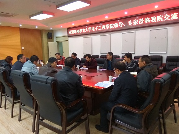 2016年11月29日上午,华南农业大学电子工程学院刘盛展副院长一行8人来我院进行学习交流。蒋斌书记、周新志副院长、陈笃海副书记、光电实验室主任曹益平教授、教务办公室魏俊老师等参加了会见。