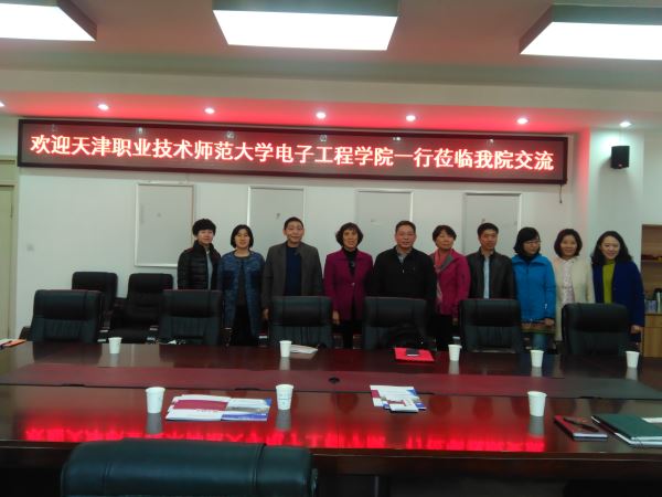 11月25日上午,天津职业技术师范大学电子工程学院李春华党委书记一行8人来我院进行学习交流。蒋斌书记、周新志副院长、陈笃海副书记、党政办主任王绍朋等参加了会见。