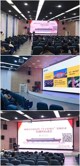 为锻炼我校学子社会实践能力,保障学院招生宣传对接中学的各支“学子家乡行”实践活动队伍能够安全顺利开展活动,学院于2021年12月23日中午12:30在江安一教水上报告厅开展了“学子家乡行”实践活动培训暨启动会,参与该培训启动会的有学院党委副书记陈笃海老师,学生辅导员吴秀玲老师,教务指导老师温文婷老师和杨华老师,以及在校来自山东省和川师附中以及盐道街中学的270名本科生。