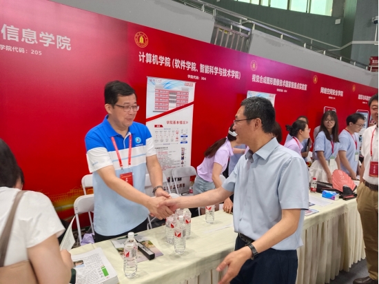 赵长生副校长来到我院展位上与邰明松书记就我院研究生招生相关工作展开深入交流。老师们在现场对家长、同学们提出的问题进行了一一解答,介绍了我院研究生教育的整体情况、学科优势、特色培养、夏令营举办情况等。