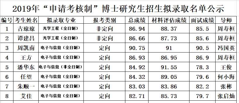 一、成绩和拟录取名单公示