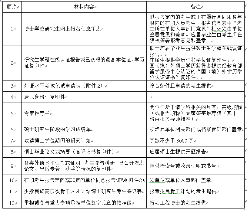 博士入学申请材料提交清单