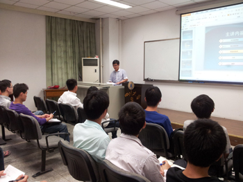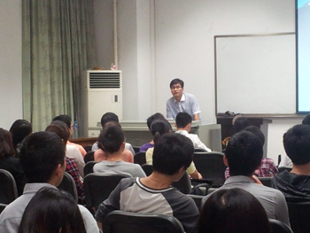 刘良彪同学根据自己准备找工作以及面试的各种经历,总结经验,以幽默风趣的口吻,给大家做了精彩的报告。报告内容主要包括三个部分:找工作的准备、一周六面的经历和慎重的选择。同学们听得津津有味,并不时与嘉宾有互动,沙龙气氛十分活跃。