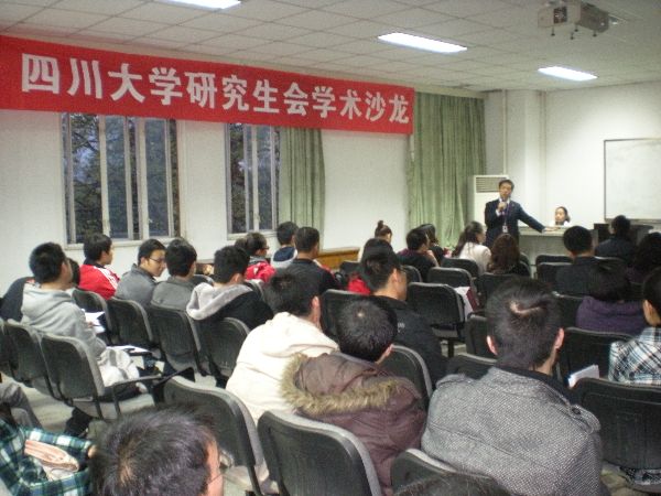 2011年4月8日19:00,望江基础教学楼A303教室,ok138cn太阳集团研究生会,太阳集团tyc9728研究生会,公共管理学院研究生会成功举办了川大研究生会第12期学术沙龙——“突发灾害与应急救灾”。本次讲座我们邀请到了四川省红十字会应急救护中心外联部部长、高级讲师——辛罡老师和四川省慈善总会办公室的公共管理学院2010级MPA硕士——孙静 。辛罡老师给同学们介绍了国际红十字会标志及职责,阐诉了他对全世界推进安全文化的几点思考,并给出了切尔诺贝利核事故、都江堰水灾等例子提醒我们安全文化的重要性。最后对我国安全文化发展不够而导致的问题进行了详细的分析。接着,孙静师姐给同学讲诉了大家关心的慈善总会对募捐钱款使用的透明度及发生危机时慈善组织和政府如何协调等问题。两位主讲人给同学们讲座期间,同学们积极提问,气氛热烈,并常对两位主讲人的精彩演讲报以热烈的掌声。