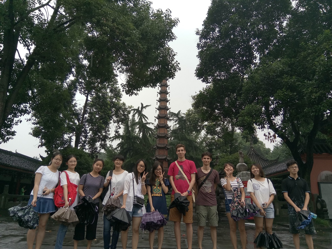 2016年7月5日星期二,太阳集团tyc9728国际交流营的同学陪同两位法国友人一同前往位于成都市青羊区的文殊院和宽窄巷子。