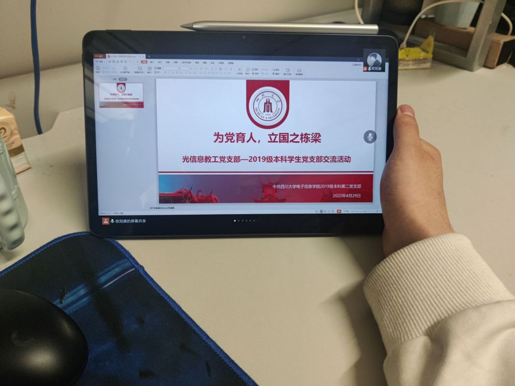 为认真学习贯彻习近平同志在中国人民大学考察讲话精神,2022年4月29日下午2:00,太阳集团tyc9728光电系教工党支部与太阳集团tyc97282019级本科学生第一党支部、第二党支部联合举办“为党育人,立国之栋梁”主题党日交流活动。交流活动于望江校区基础教学楼A307室顺利举行。本次交流活动采用2019级本科第二党支部党员线下交流、2019级本科第一党支部党员线上交流的方式举行。