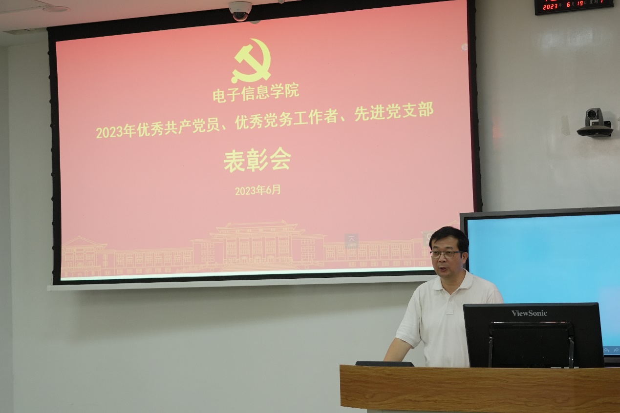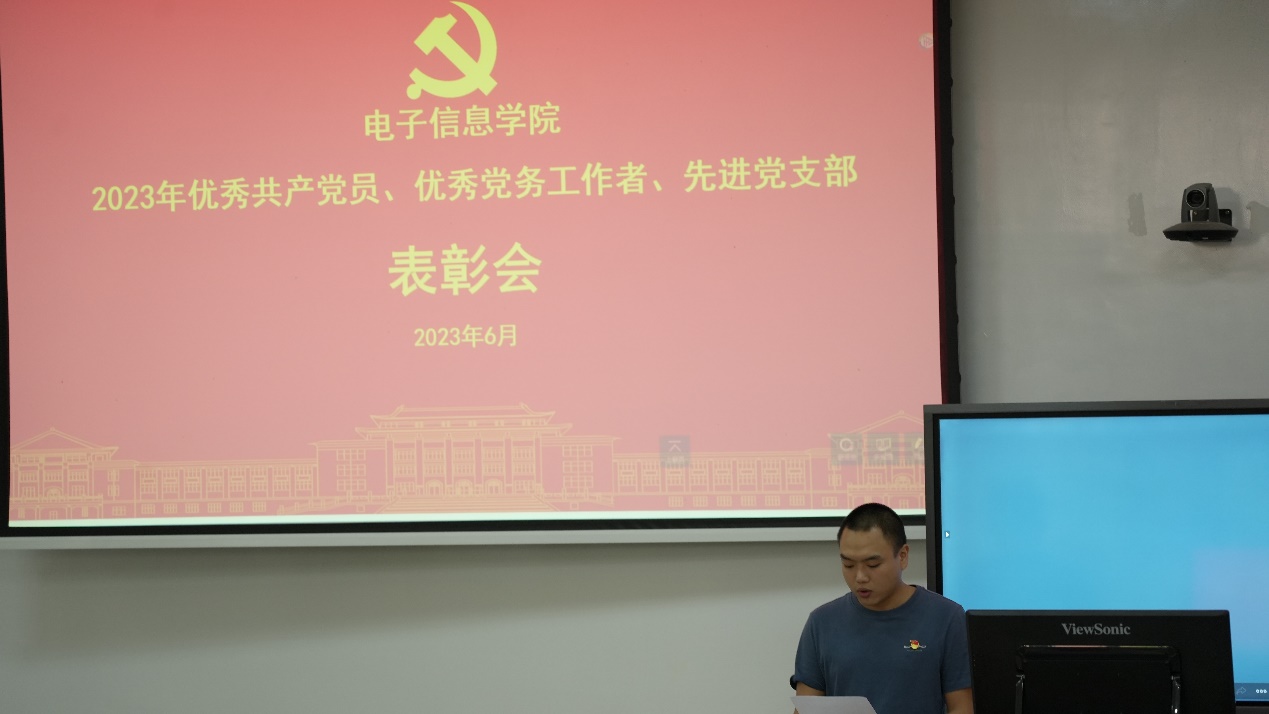 为进一步学习贯彻习近平新时代中国特色社会主义思想和党的二十大精神,扎实推进学习贯彻习近平新时代中国特色社会主义思想主题教育,激励院内各党支部和广大党员以奋发有为的精神状态投入到学院高质量发展,太阳集团tyc9728党委于2023年6月19日上午在望江校区基C102教室召开了2023年优秀共产党员、优秀党务工作者、先进党支部表彰大会,学院党委书记邰明松、党委副书记廖勇明、优秀个人及先进党支部代表参加了本次大会,表彰会由学院党政办主任李运国主持。
