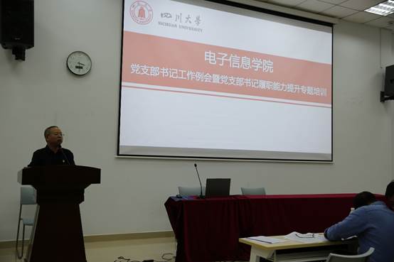 在会上,学院专职组织员彭亮教授就发展党员工作流程作了专题报告,从申请入党、入党积极分子的确定和培养教育、发展对象的确定和培养考察、预备党员的接收、预备党员的教育考察和转正5大模块25个环节,全面系统的介绍了党员发展流程,重点强调了积极分子和预备党员培养阶段的新规变化,结合实践中的案例以及入党材料审核过程中的细节问题,详细讲解了党员发展的工作流程及关键时间节点。并从入党动机、理想信念、思想认识等方面进行了重点说明,并展示了关键程序所对应的归档材料。彭亮教授指出党支部要熟练掌握工作流程,把严格标准、严格培养、严格程序贯穿发展党员工作全过程,切实把好党员发展入口关、质量关、程序关,推进学院党建工作高质量发展。