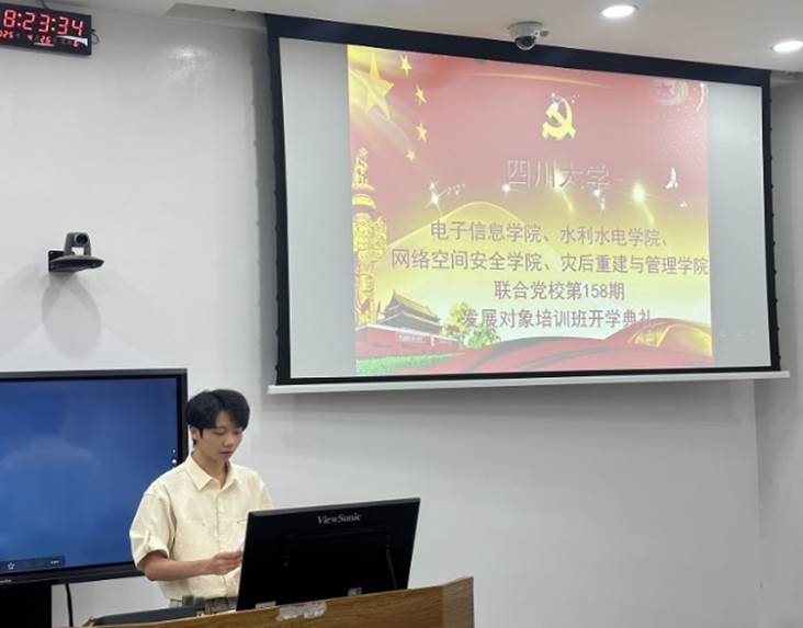 2025年4月25日上午,ok138cn太阳集团,太阳集团tyc9728,44118太阳成城集团、水利水电学院、网络空间安全学院、灾后重建与管理学院联合党校第158期学生党员发展对象培训班在望江校区基础教学楼C座202教室顺利举行。开班典礼在庄严的国歌声中正式开始,全体参会人员庄严肃立,齐唱国歌,现场气氛庄重而热烈。太阳集团tyc9728党委书记彭舰,党委副书记兼纪委书记廖勇明出席开班典礼。彭舰书记立足当下时代背景和复杂的世界形势,对学员们提出了新时代党员应具备的素质要求,鼓励学员们在新时代的浪潮中,坚定理想信念,勇担时代使命,不断提升自身素养,以实际行动向党组织靠拢。