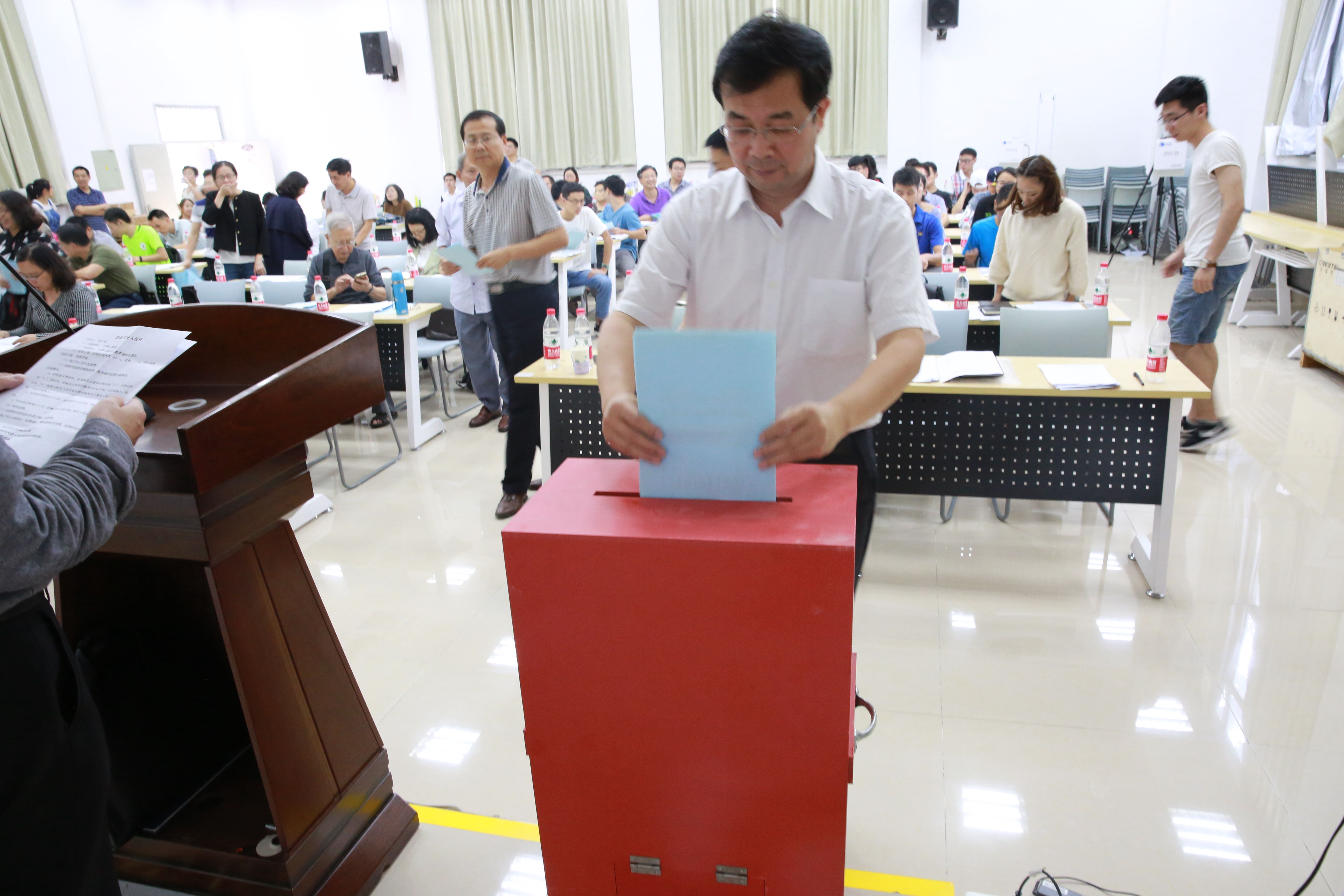 接着大会书面审议了陈笃海同志纪委工作报告。主持人陈笃海同志宣读了两委选举办法,各党代表一致通过了总监票人、监票人、计票人名单。最后,由何小海同志担任总监票人主持选举工作并在投票结束后宣读了计票选举结果,选举产生了太阳集团tyc9728新一届两委委员。陈笃海同志宣布大会圆满闭幕。