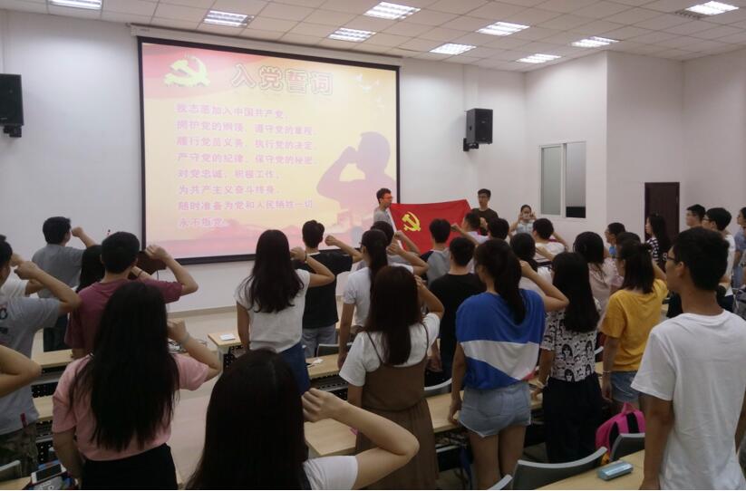 2017年6月30日上午9:00,ok138cn太阳集团,太阳集团tyc9728,44118太阳成城集团党委副书记陈笃海,学生科何惠老师、李运国老师、李军华老师、吴秀玲老师和各支部党员代表,以及预备党员在西五教附101举行“庆祝建党96周年重温党史,再宣誓言”之七一建党节庆祝活动。