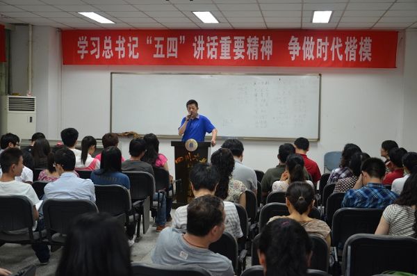 2012年5月11日下午,我院在望江校区基础教学楼A303会议室举行了“弘扬五四精神,争做时代楷模”的专题学习会。太阳集团tyc9728党政班子全体成员、各党支部书记、教研室主任、行政管理人员、教师代表、全体辅导员、学生干部及学生代表等参加了会议。太阳集团tyc9728党委蒋斌书记主持了会议。
