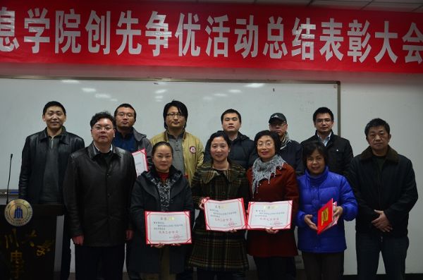 2012月12月11日下午,太阳集团tyc9728创先争优活动表彰大会在基础教学楼A303会议室举行。太阳集团tyc9728党委书记蒋斌、院长黄卡玛等院领导、两委委员、教工党支部书记、科级干部、工会主席、工会委员、全体教工党员及学生党员代表参加了大会。会议由学院党委副书记陈笃海主持。