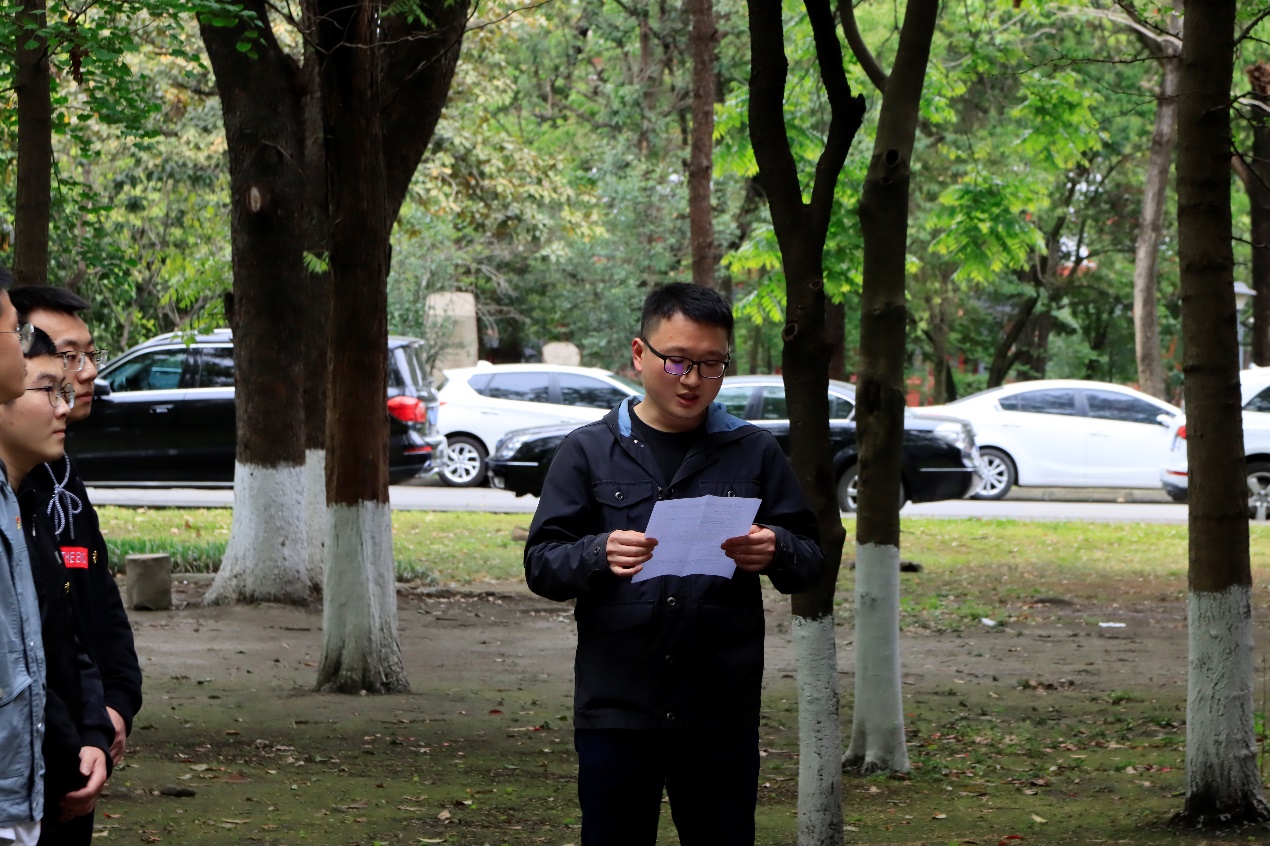 学院党委书记邰明松同志和副书记陈笃海同志参加了此次活动。陈笃海副书记带领大家解读学习了纪念碑两侧对联“此间革命熔炉复地翻天留正气,我辈黉宫俊乂继往开来谱新篇”的含义,引导大家了解川大在中国革命史和中国共产党历史中的作用。