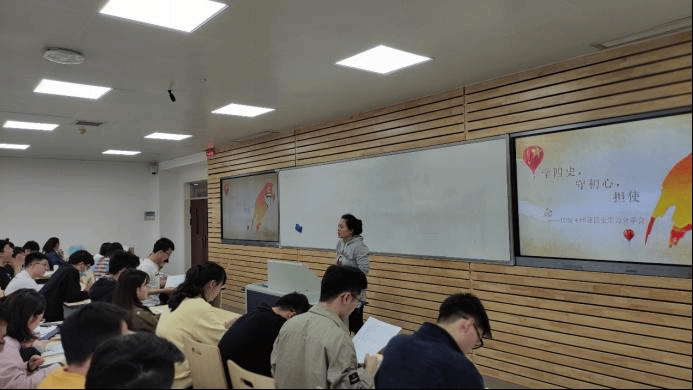 本次学习分享会特地邀请了17级本科王绎涵同学。王绎涵同学结合他自身的四史学习感悟和亲身实践,从政治思想,学习生活,学生工作和科技创新四个方面为同学们分享了作为新时代的大学生党员,我们该如何学四史,守初心,担使命。王绎涵同学谈到,“作为一名学生党员,当我们提交入党申请书的那一刻起,思想上就要入党。我们要将党的理论知识融入到日常生活中,入党志愿书的填写并不是空中楼阁,泛泛而谈,它可以是有血有肉的东西。”王绎涵同学还结合近期时政热点,讨论了日本核污水入海,新疆棉花等热点事件,将时事政治与四史精神相结合,引导同学们学党史、知党恩、跟党走,坚定理想信念,厚植爱国情怀,发奋成长成才。