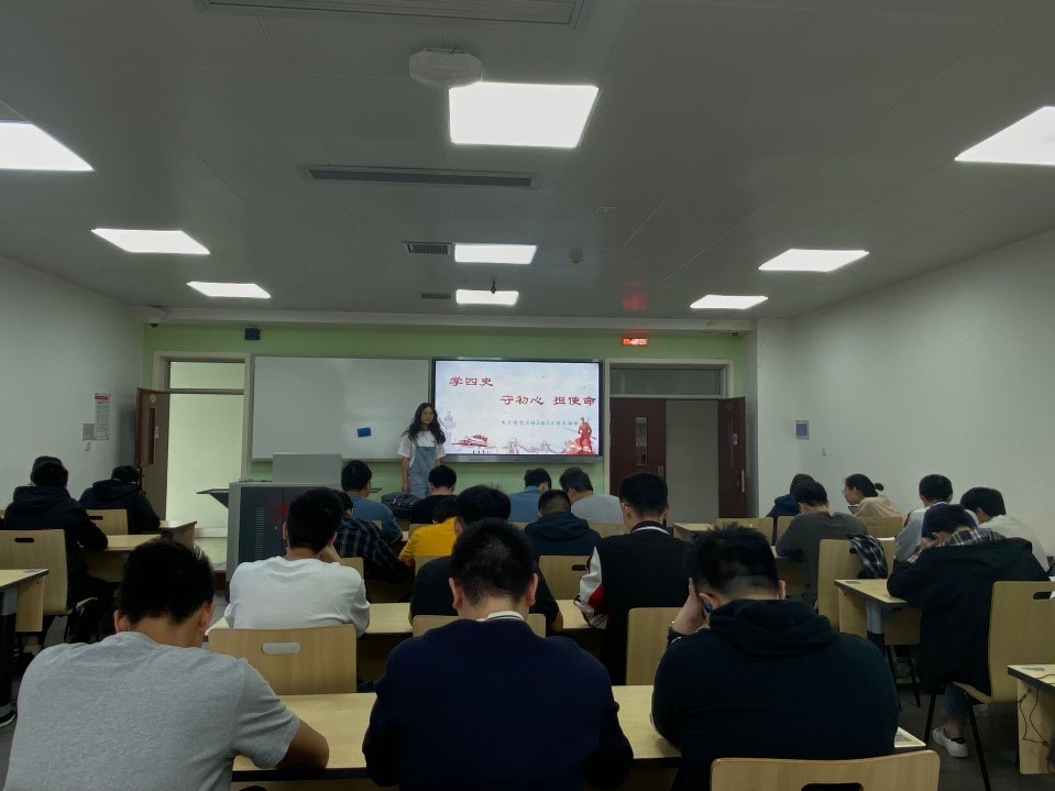 2021年5月7日,ok138cn太阳集团,太阳集团tyc9728,44118太阳成城集团2018级电子信息工程二班在基础教学楼A座514举办“学四史,担使命”主题团日活动。