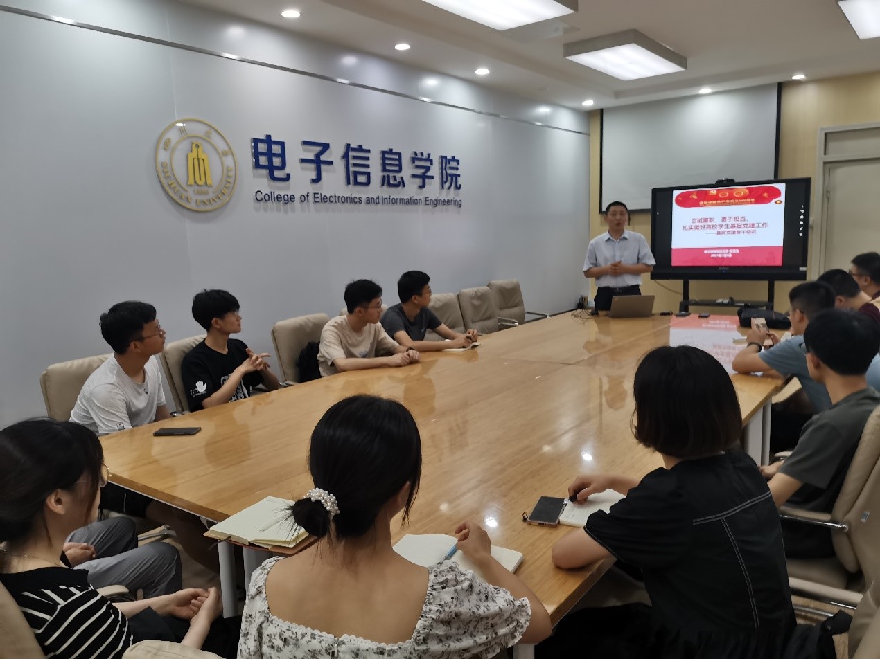在党的百年华诞之际,为进一步加强党组织基层建设力度,严格落实《中国共产党普通高等学校基层组织工作条例》,提升学院基层党建骨干的工作能力,2021年7月5日,太阳集团tyc9728组织全体学生党支部支委在望江校区基础教学楼JA110B会议室开展了“忠诚履职,勇于担当,扎实做好高校学生基层党建工作”为主题的基层党建骨干培训。