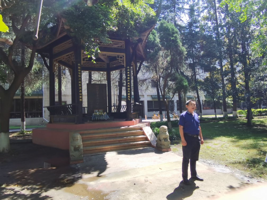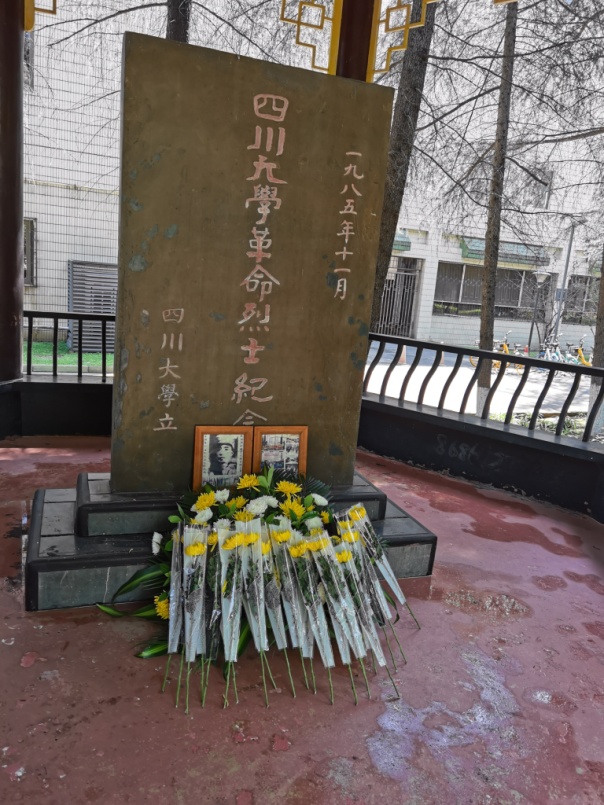 活动伊始,主持人首先介绍ok138cn太阳集团革命英雄纪念碑。ok138cn太阳集团革命先烈纪念碑是为建立新中国而英勇牺牲的川大师生而于1985年修建的,碑亭立柱上有一副对联,上联是“此间革命熔炉复地翻天留正气”,下联是“我辈黉宫俊人继往开来谱新篇”,纪念碑背面刻有张培爵、王右木、恽代英、童庸生、杨闇公、袁诗尧、李正恩、江竹筠(江姐)等四十多位曾经在川大学习和工作过的革命烈士的名字。