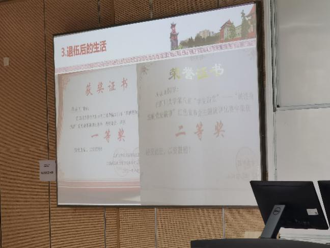 段振南告诉了同学们他入伍的初衷:家国情怀。在新兵连的三个月,他严格要求自己,刻苦训练,渴望为党和国家做更多的贡献。功夫不负有心人,在新兵考核与选拔中,他成功加入特战旅,成为一名光荣的特种兵。接着,他向同学们介绍了部队的生活,讲述了自己在部队中拉练,潜水,跳伞和攀岩等经历。他以朗诵日记的方式向同学们讲述了自己在军队中的感想,虽然训练艰苦,常常四肢酸痛,手脚起泡,膝盖磨损,但却有无尽的荣誉感。参军入伍期间,他还前往郑州抗洪救灾,承担起了作为一个军人的使命。最后,段振南向同学们介绍了征兵的政策,号召同学们投笔从戎,保家卫国。