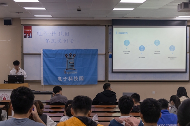 2022年4月3日,电子科技园第五次例会顺利举行。本次例会于江安校区一教B501室举行,由主席团及各部门部长负责,参会人员为电子科技园全体学生干部与干事。