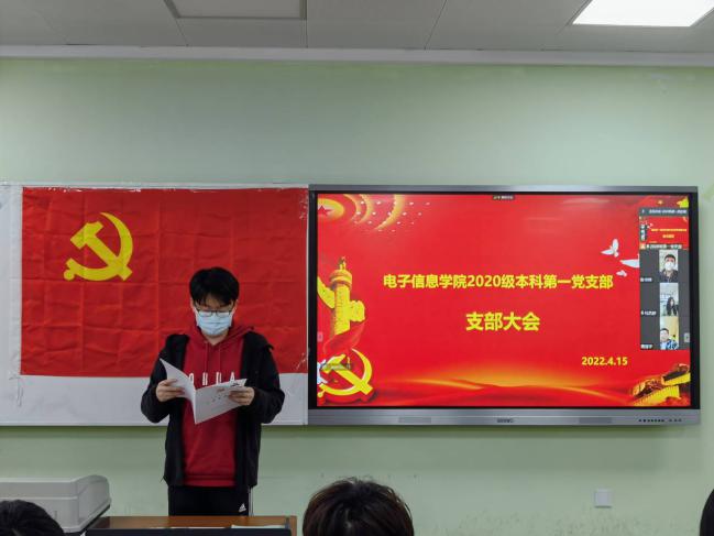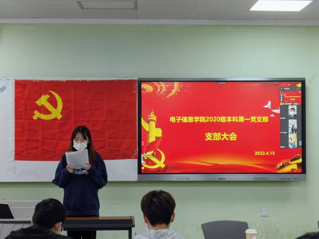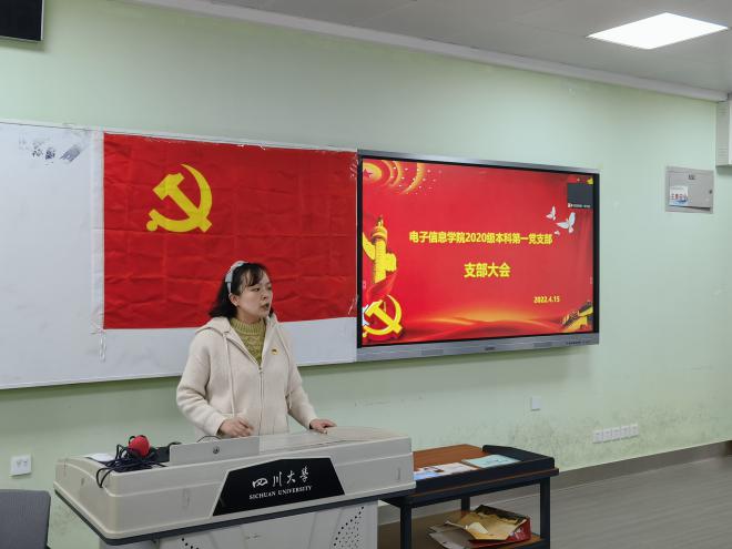 2022年4月15日下午15时至17时,太阳集团tyc97282020级本科第一党支部支部大会在一教D102召开。2020级辅导员兼支部书记陈晓娟老师主持了本次会议,并发表重要讲话。