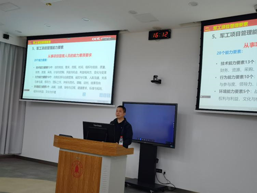 中国电子科技集团公司第十研究所马智骢副主任结合自己丰富的大型航空航天电子信息系统化管理经验,分别从多个方面为同学们介绍了大型军工项目管理的内容和需求分析,为以后有志从事军工项目研究的同学打下了基础。
