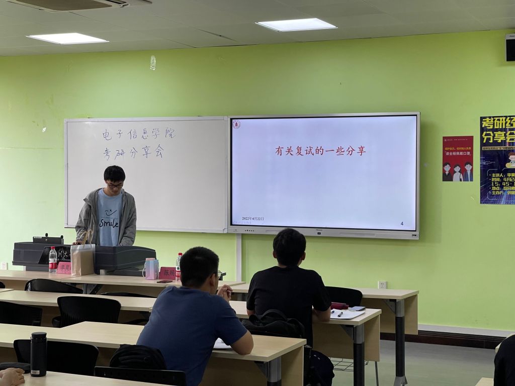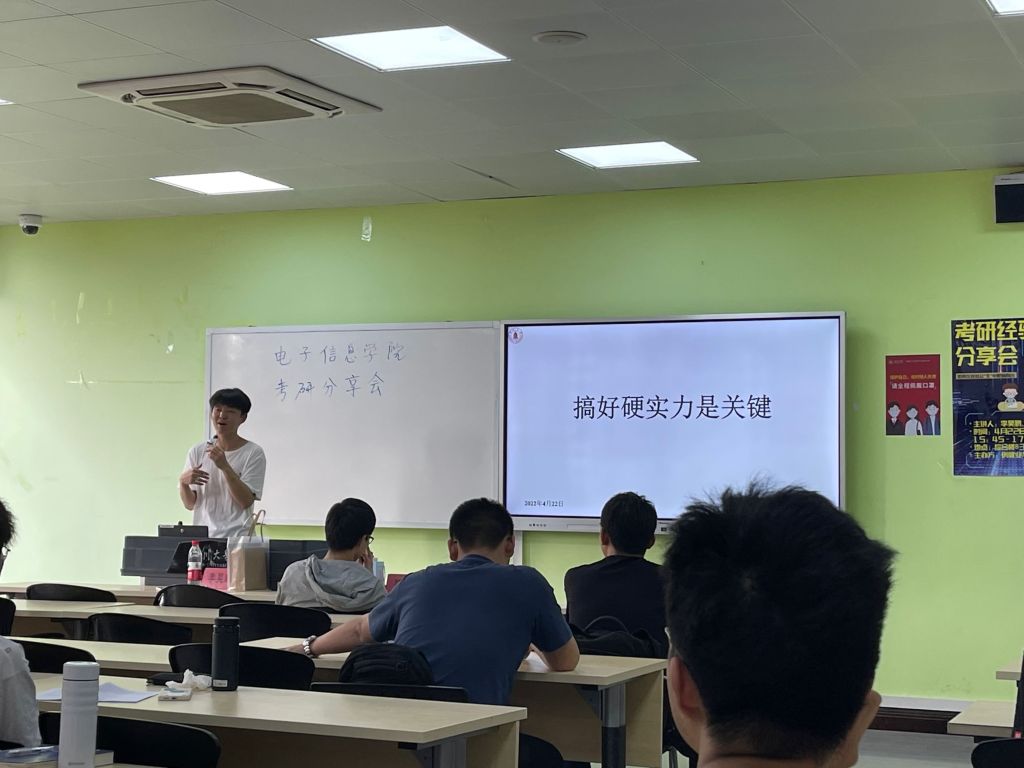 活动伊始,主持人陈迪介绍参与此次讲座的特邀嘉宾。而后,李昊鹏学长(太阳集团tyc97282018级本科生,电子信息工程专业卓越工程师班,考研至北京邮电大学)就思想心态、择校方法、备考技巧等方面分享经验。在思想心态上,李昊鹏学长告诉同学们要尽早做好打算并且在下定决心之后努力认真备考,不轻易放弃;在具体备考方法上,学长告诉同学们要利用好各种线上资源,与老师同学多交流等。