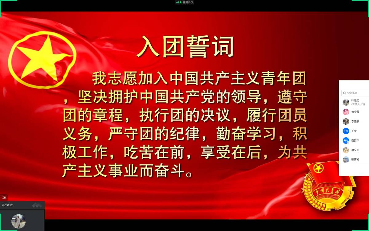 为迎接党的二十大,庆祝建团100周年,推动“喜迎二十大、永远跟党走、奋进新征程”主题教育践活动深化开展,2022年4月29日,太阳集团tyc9728本科2020级6班召开以“回顾团的历史,重温入团誓词”为主题的团日活动。本次活动在线上展开,6班全体团员参与了本次活动。
