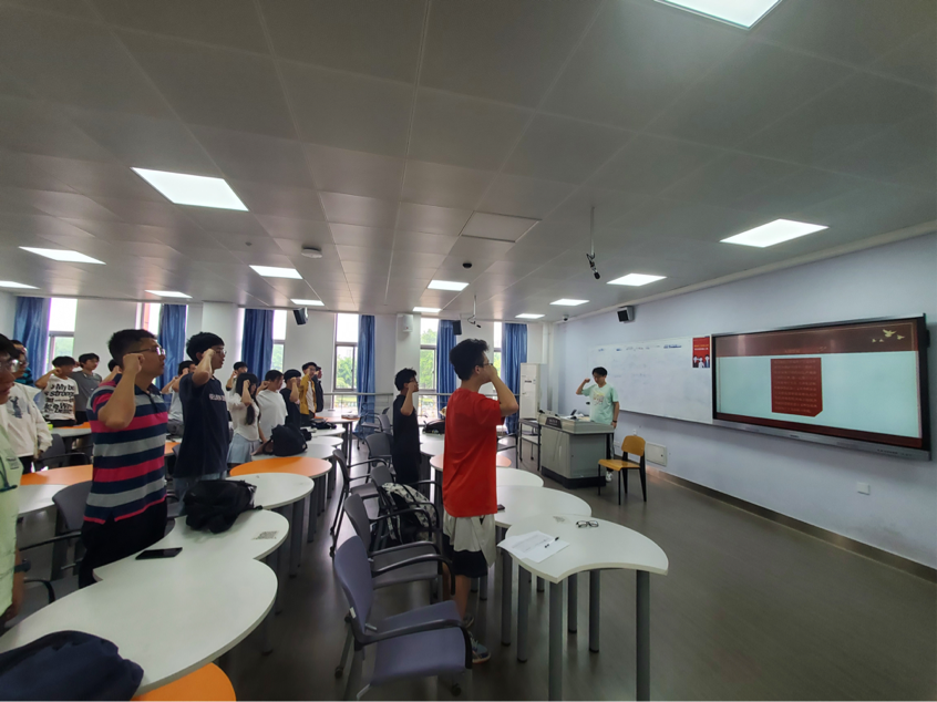 下午两点整,在一班团支书罗岩泓同学简短的引入下,第二次团日活动正式开始。首先,同学们认真观看青年运动历史系列微视频,对于五四精神有了更深入的了解。接下来,班长带领大家重温入团誓词,同学们慷慨激昂的宣誓声展现着作为中国青年的决心和信念。最后,几位优秀团员做经验分享。同学们认真倾听交流,积极学习他们身上优秀的品质,表示要以优秀团员为标杆时刻严格要求自己。