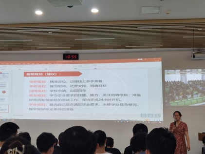 接下来,吴秀玲老师向在座学生说明了假期离校、返校、申请留校等事情需要注意的事项,尤其是假期人身财产安全、实验室安全等方面进行了着重强调,并对同学们的暑假规划就学业、保研、考研、出国、就业等方面给出了建议,让同学们对如何有意义地度过本次暑假这个一问题有了更清晰的答案。