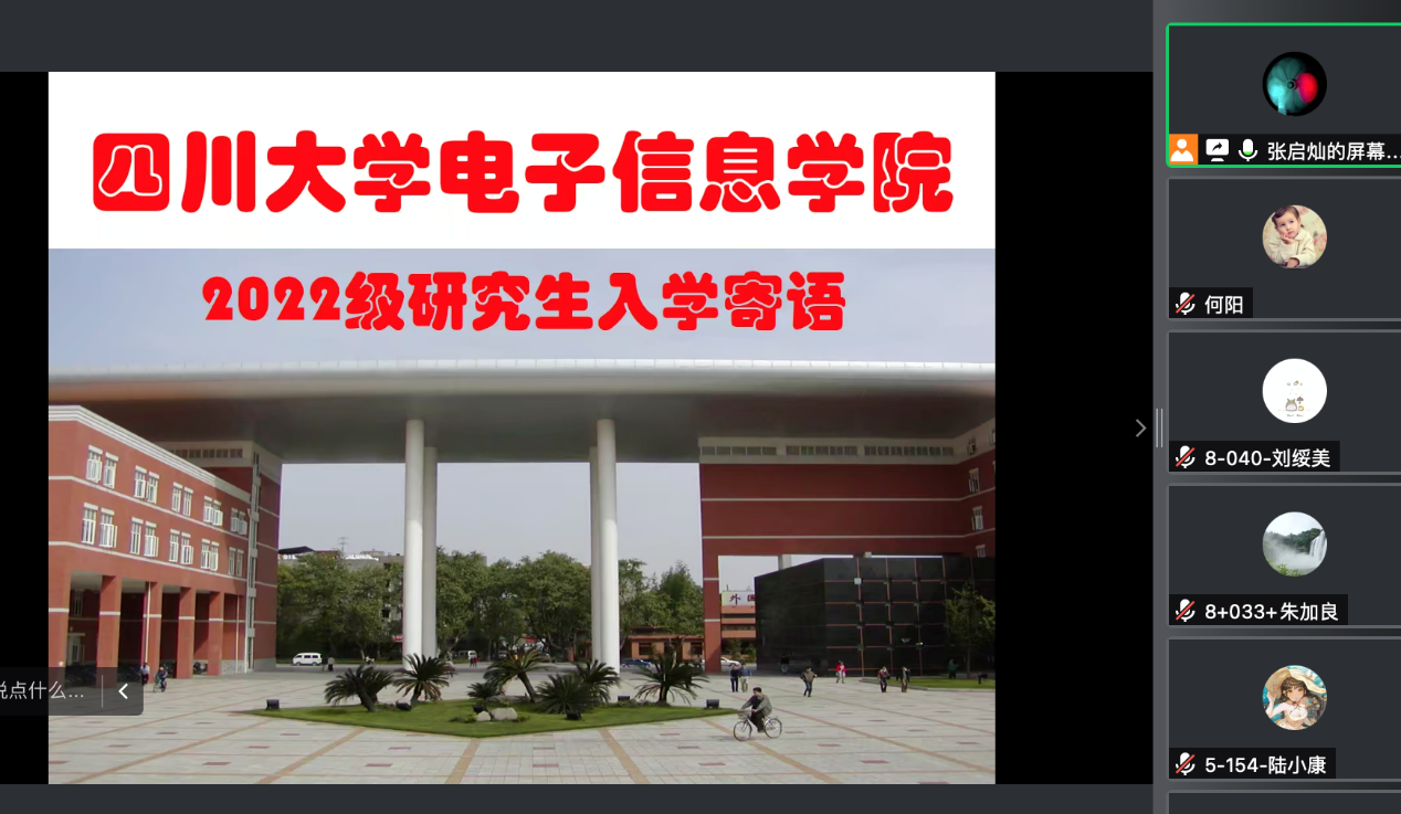 眼下正是疫情防控关键时刻,新生报到的步伐被迫延缓,但学习的时光不容耽误。9月17日上午10点,2022级研究生新生入学教育在腾讯会议线上举行,学院党委廖勇明副书记、副院长张启灿教授、教务办蔡苹杨老师、2022级研究生辅导员何阳老师、兼职辅导员王伟丁老师和2022级全体硕博研究生参加此次云课堂。