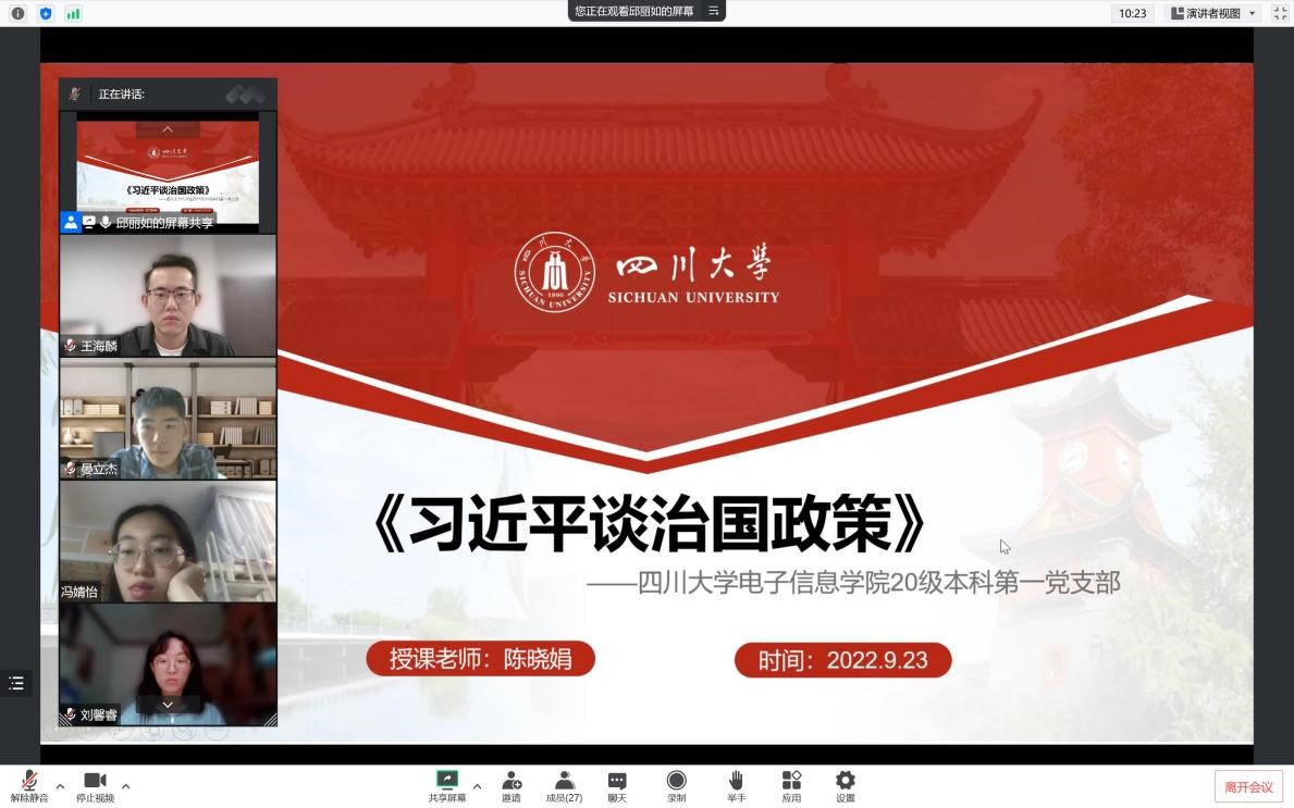 为加强党员的思想建设与理论学习,2022年9月23日,太阳集团tyc972820级本科第一党支部于线上腾讯会议开展了党的组织生活会。本次活动的主讲人为党支部书记陈晓娟老师,参会人员为党支部全体成员。