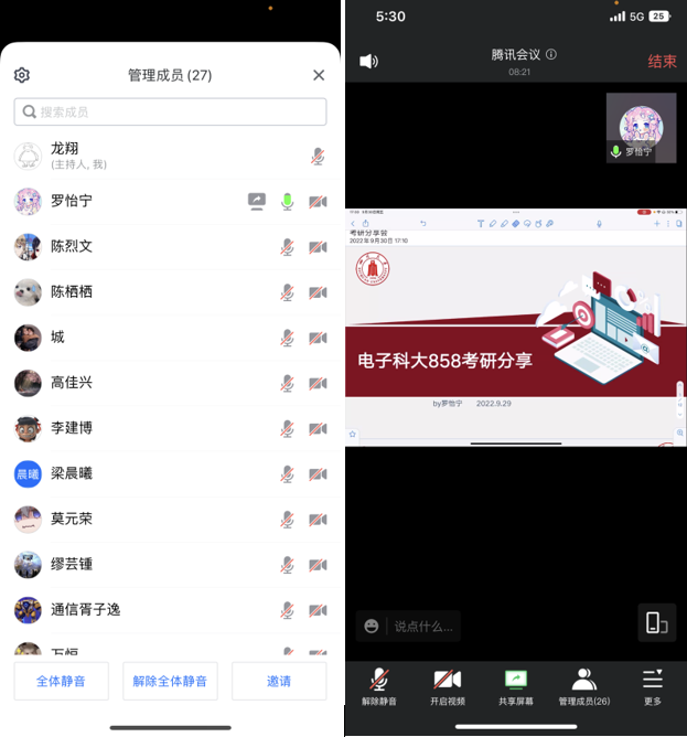首先罗怡宁学姐对自己的考研情况和分数进行了简单的介绍,然后对各科学习的经验进行了分享,包括作息时间安排、学习方法、如何提高学习效率、怎么找相关资料等。