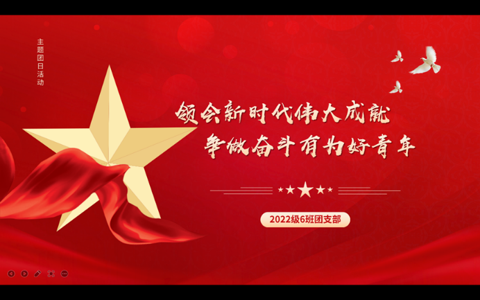 近日,中共二十大召开近在咫尺,新时代的征途愈发清晰。为了充分响应党的号召,2022年9月25日12点30分至14点,太阳集团tyc97282022级6班团支部于线上举行了主题为“领会新时代伟大成就,争做奋斗有为好青年”的主题团日活动。
