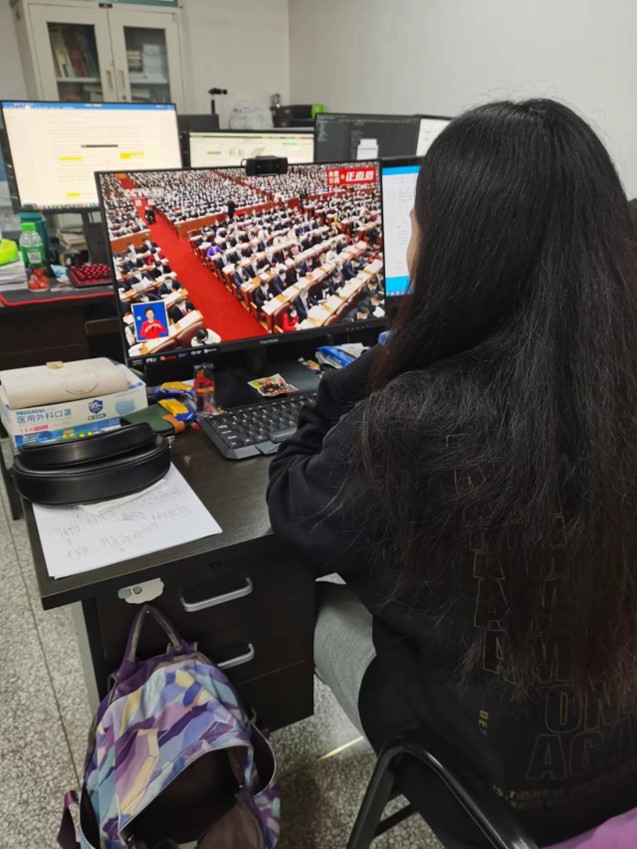 党支部书记杨斯涵同志表示,聆听了习近平总书记所作的报告,倍感振奋、深受鼓舞。青年强,则国家强。我们正亲眼目睹、亲身经历、亲自参与、全程见证中华民族伟大复兴中国梦的实现,人生最充盈的年华正与祖国的发展建设同频共振。科学研究、乡村振兴、经济发展...祖国的建设正是需要当代青年奋进的时刻。我们要勇挑时代重担,将个人梦想卓有成效地汇聚成实现中国梦的强大青春能量,在艰苦奋斗中砥砺意志品质,承担起建设社会主义现代化强国、实现中华民族伟大复兴的历史使命!