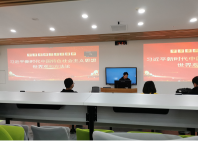 本次活动以“习近平新时代中国特色社会主义思想世界观和方法论”为主题,带领同学们学习领会党的二十大精神,深入理解习近平新时代中国特色社会主义思想世界观和方法论。本次活动由黄宇清同学主持,由党员陈宏利同志进行了PPT讲解,讲解分为习近平新时代中国特色社会主义思想世界观方法论的实践依据、科学内涵和丰富发展三个部分。此次活动前期准备充分,并获得了同学们的热烈响应和一致认同。