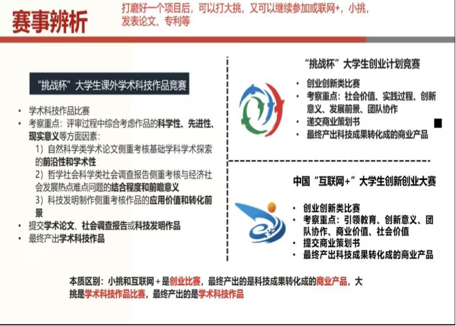 首先,由刘庆梅同学向同学们讲解大学生课外学术科技作品竞赛。刘庆梅同学初步介绍了比赛的要求和重点,然后具体地说明了作品内容的创意性、学术性等的重要性。最后,刘庆梅同学总结了参加大学大学生课外学术科技作品竞赛的具体流程和方法,并表达了对同学们的鼓励。接着,由王辉隆同学和陈铁元同学分享经验。王辉隆同学就主体赛的大类和子类进行了讲述,对作品进行了清晰的分类,并指出赛事的考察重点,同时,对不同的赛事辨析分别进行了详细的讲解。王辉隆同学的讲解让同学们对赛事有了清晰的认识。然后,陈铁元同学分享了对于科技类赛事如何去接触项目以及如何联系学院老师等问题进行了深刻的讲解。同时,陈铁元同学对自己的参赛作品进行了详细的介绍,在展示自己的成果时也鼓励同学们脚踏实地地去参与比赛。陈铁元同学的讲解让使同学们了解到如何更好地参与赛事。