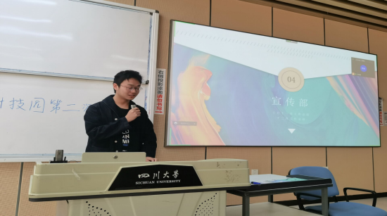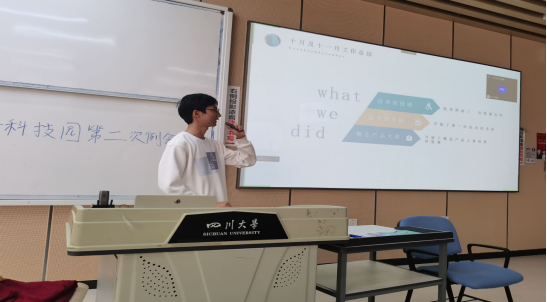 首先部长们依次上台进行自我介绍,之前几位受困于疫情未能返校的部长也和同学们进行了亲切的交流。同时技术部大部长肖迪同学,行政部大部长施金住同学,外联部部长沈琳鸿同学,宣传部大部长孔令杰同学,也依次对两个月来的工作进行了总结与汇报,并且预告了接下来的安排与活动。