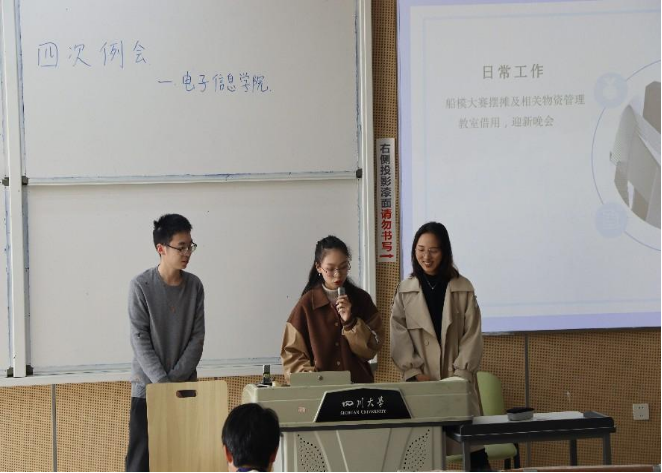 2023年3月5日下午2点整,电子科技园第四次例会在ok138cn太阳集团江安校区综合楼C505举行。出席例会的有电子科技园主席团人员、各部门部长及副部长、科技园全体干事。