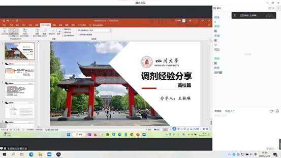 随后, 成功调剂到厦门大学的王林琳学姐先进行分享。她分享了准备调剂所需要做出的准备和获取的信息途径,充分对比自己的自身情况和学校接受的可调剂的专业代码及分数要求,同时要注意往年学校的报考和录取情况,时刻关注官网信息,准备材料。此外,在调剂复试中,要做到扬长避短,着重强调自己的优势,并注重礼仪。