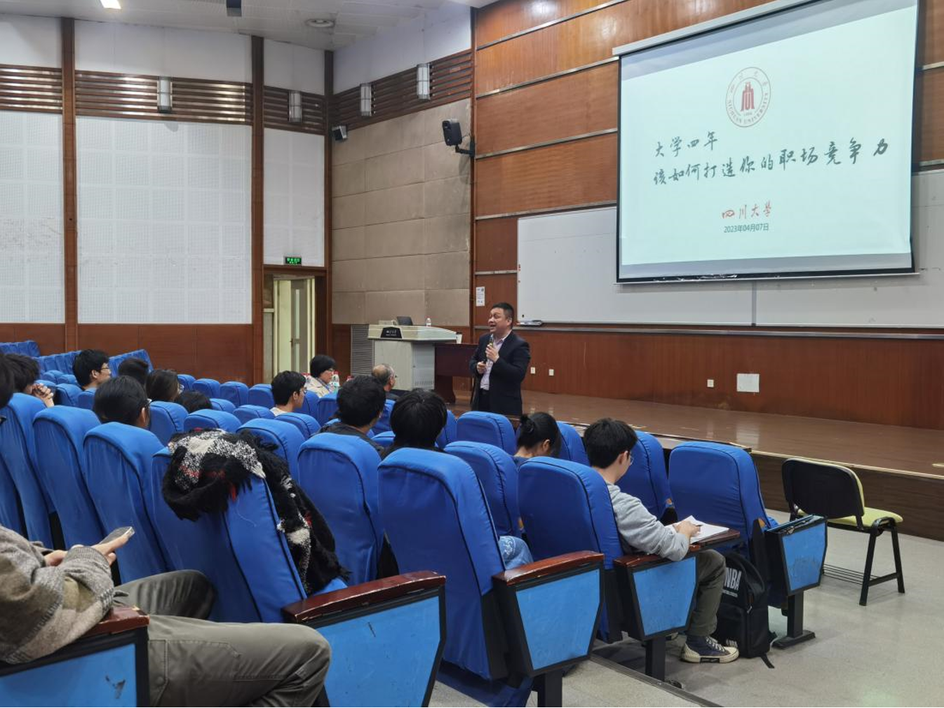 2023年4月7日晚19:00,由ok138cn太阳集团心理健康的中心、ok138cn太阳集团就业中心主办,太阳集团tyc9728二级心理辅导站承办,教育部学生服务与素质发展中心特聘专家、国家二级心理咨询师吴沙老师面向ok138cn太阳集团全体学生开展了主题为“大学四年,该如何打造你的职场竞争力”的职业生涯规划讲座ok138cn太阳集团江安校区综合楼C-407教室顺利举行。太阳集团tyc9728党委廖勇明副书记、二级辅导站业务负责人何惠老师、学院各年级辅导员以及各年级同学参与了本次活动。