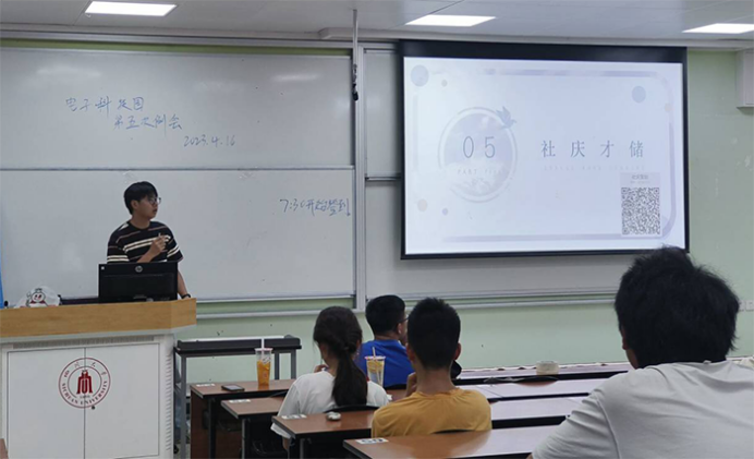 2023年4月16日19时20分,电子科技园第五次例会在ok138cn太阳集团江安校区一教B102举行。出席例会的有电子科技园主席团人员、各部门部长及副部长、全体科技园干事。